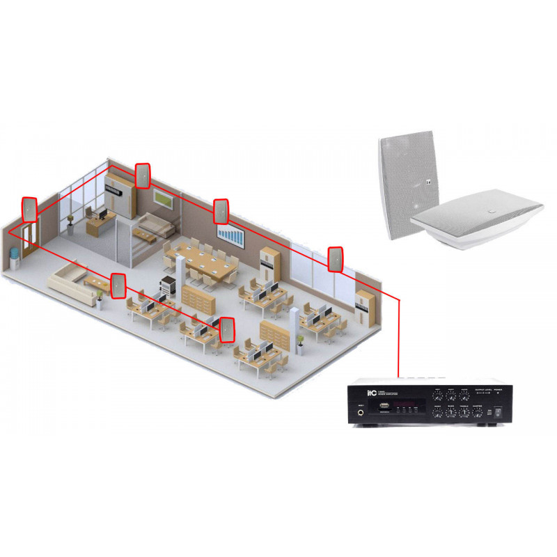 Акустична система для офісу 6 настінних динаміків TOA