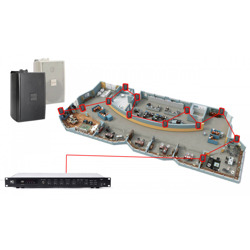 Для фонової музики комплект акустики для офісу 12 настінних динаміків BOSCH. Музика з флешки USB, карти пам'яті SD або блютуз з телефону