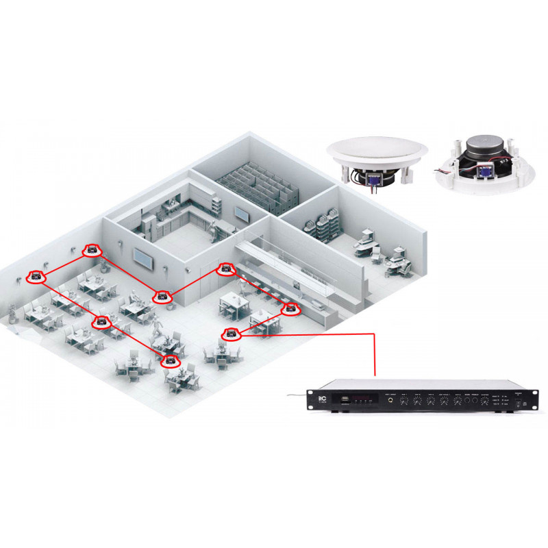 Для фонової музики комплект акустики 120Вт для кафе, ресторану 8 стельових динаміків TOA. Музика з флешки USB, карти пам'яті SD або блютуз з телефону