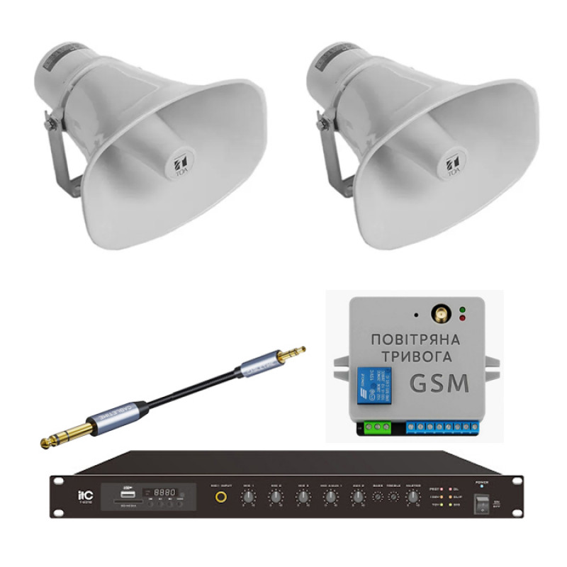 Комплект оповіщення «Повітряна тривога та Хвилина мовчання» на базі GSM контролера, підсилювача ITC T-120TB та 2 рупора TOA SC-630M