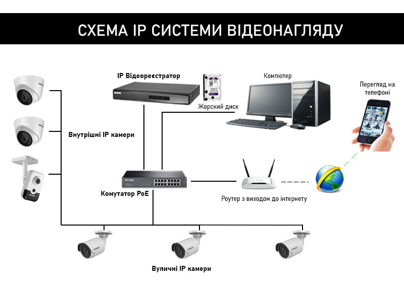 Ми пропонуємо комплекти на базі IP-камер Hikvision та мережевих реєстраторів NVR, адаптовані під площі та завдання: