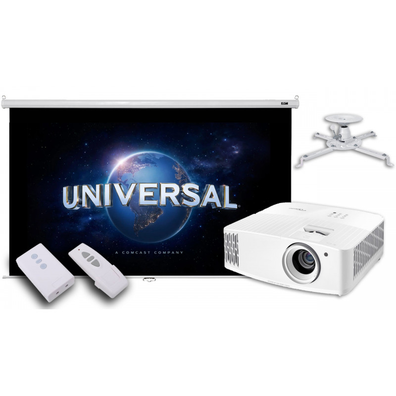 Проектор для домашнього кінотеатру Optoma UHD38x із електричним екраном 110"