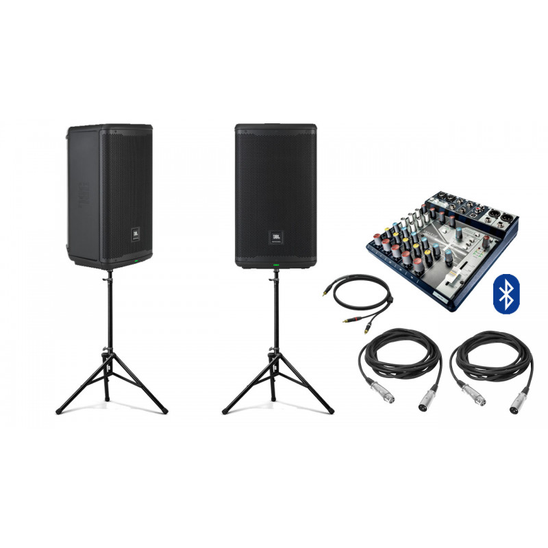 Звуковой комплект JBL для презентаций, мероприятий, диско, вокала, речи, озвучивания средних и больших помещений. Мощность 2x650Вт обеспечит качественный звук с ярко выраженным басом. Колонки на стойках с Bluetooth и микшером.