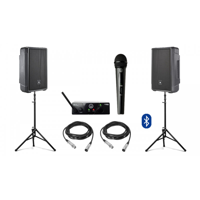 Акустическая система JBL IRX112BT Bluetooth с радио микрофоном на стойках + микшер | 2x650Вт