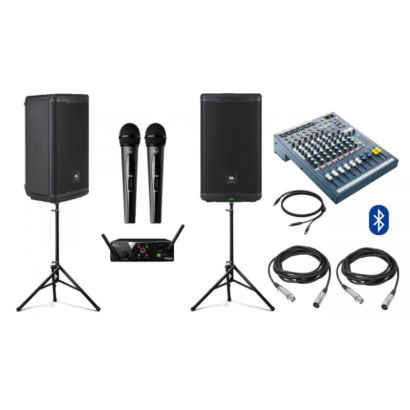 Акустическая система JBL EON715 на стойках с Bluetooth + микшер и радиомикрофонами | 2x650Вт