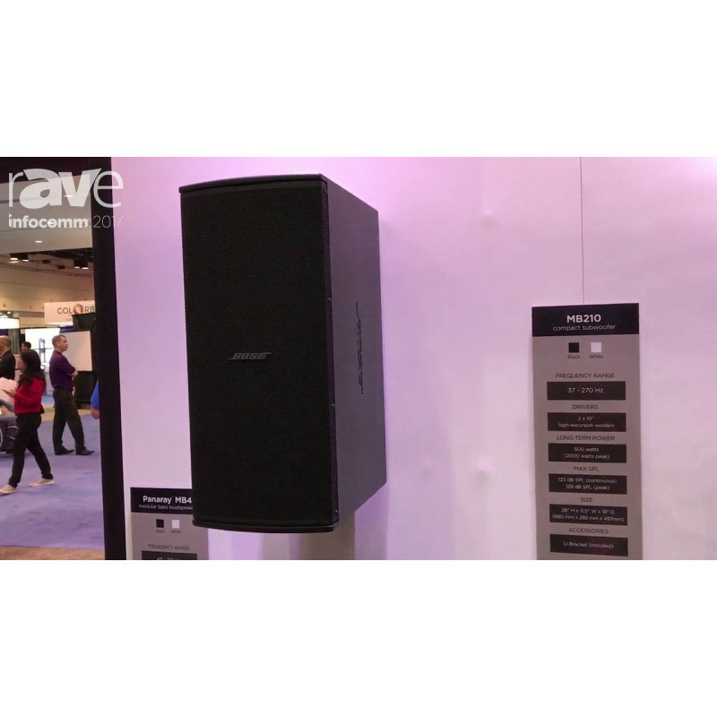 Он предназначен для воспроизведения фоновой музыки и низкочастотной поддержки небольших акустических систем. Здесь установлены два 10-дюймовых низкочастотных динамика, унаследованные от знаменитого сабвуфера Bose F1. Кабинет сабвуфера сделан из фанеры балтийской березы, покрыт полиуретановой краской и оптимизирован для фиксированных инсталляций. В комплекте идет кронштейн для легкой установки на стены или под потолок.