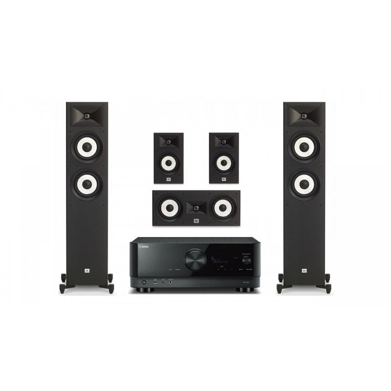 JBL Stage в черном матовом цвете — комплект для домашнего кинотеатра 5.0 + ресивер Yamaha RX-V6A black, новый комплект для кинотеатра высокого класса.
