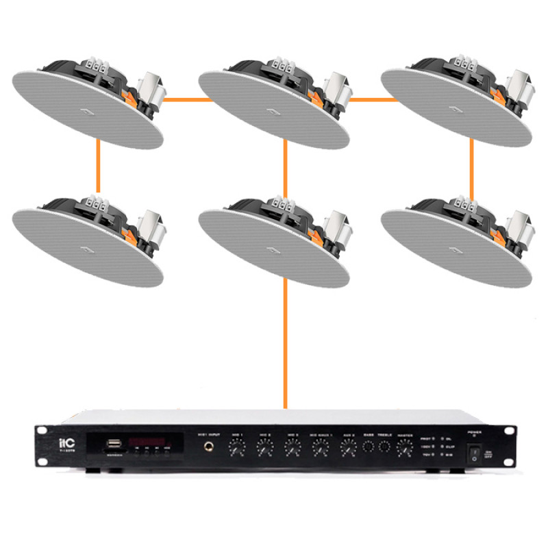 Фоновая музыка для помещений на 6 потолочных динамиков