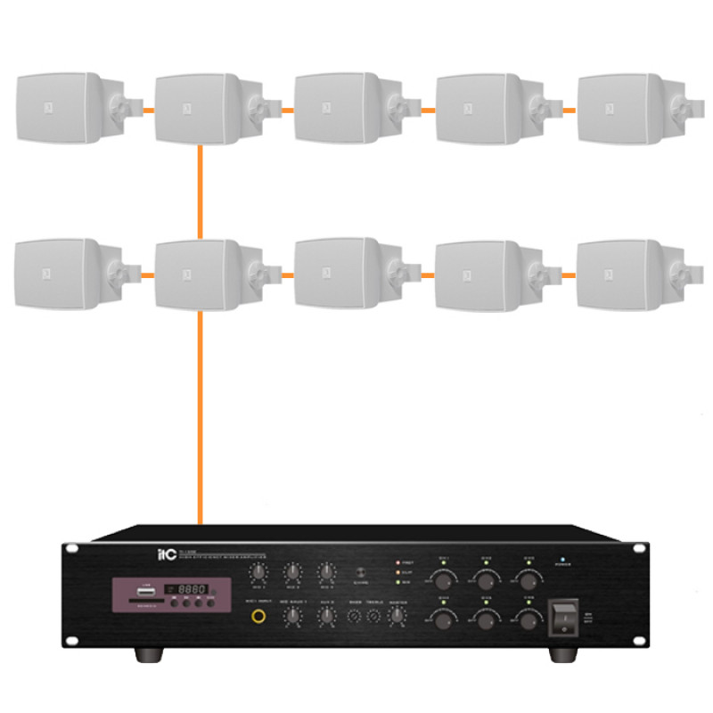 Данная конфигурация аудиооборудования предназначена для объектов, где звук должен быть не просто фоновым, а по-настоящему насыщенным и динамичным. Благодаря использованию крупных 8-дюймовых динамиков, система справляется с воспроизведением низких частот на уровне корпусной домашней акустики, сохраняя при этом все преимущества профессионального трансляционного оборудования.