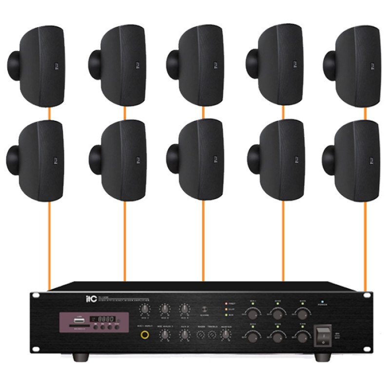 Этот комплект на базе мощной дизайнерской акустики Audac ATEO6M и профессионального усилителя ITC TI-500Z представляет собой премиальное звуковое решение, сочетающее исключительный стиль и высокую производительность для коммерческих пространств.