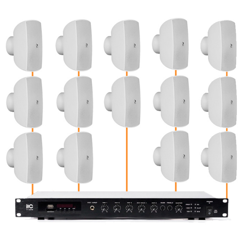 Этот комплект на базе дизайнерской акустики Audac ATEO4M усилителя ITC T-240DTB представляет собой идеальное сочетание эстетики и функциональности для современных коммерческих интерьеров.