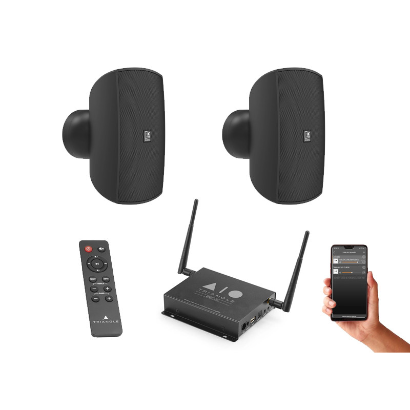 Мультирум система 2 настенных колонки Audac ATEO4M и усилителя Triangle AIO Pro A50. Управление через Bluetooth или Wi-Fi приложение AIO