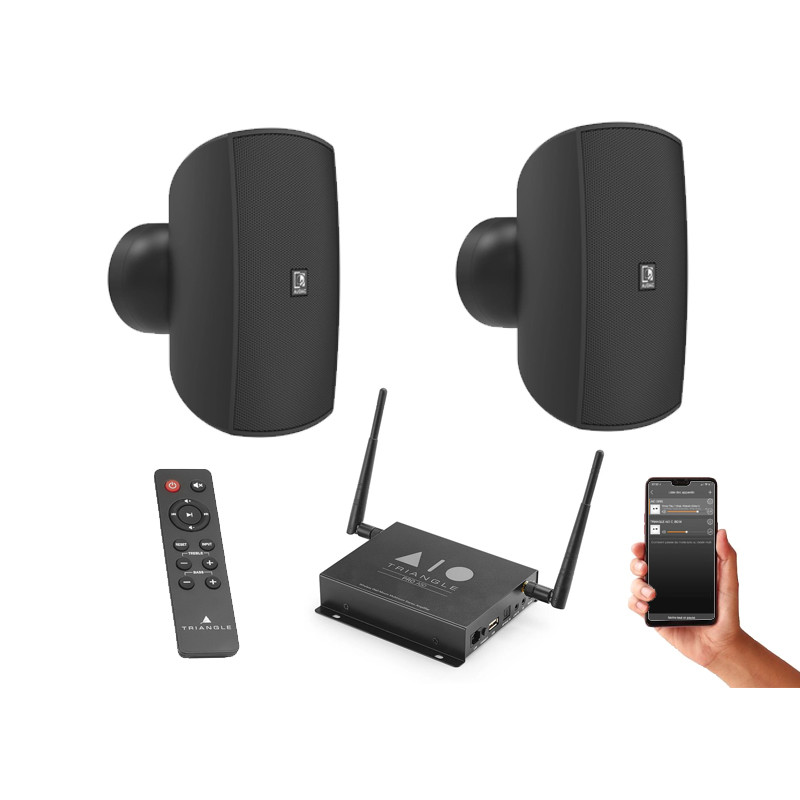 Мультирум система 2 настенных колонки Audac ATEO6M и усилителя Triangle AIO Pro A50. Управление через Bluetooth или Wi-Fi приложение AIO