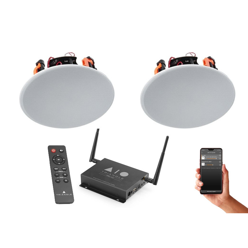 Мультирум система 2 потолочных динамика Triangle Secret ICT8 и усилителя Triangle AIO Pro A50. Управление через Bluetooth или Wi-Fi приложение AIO
