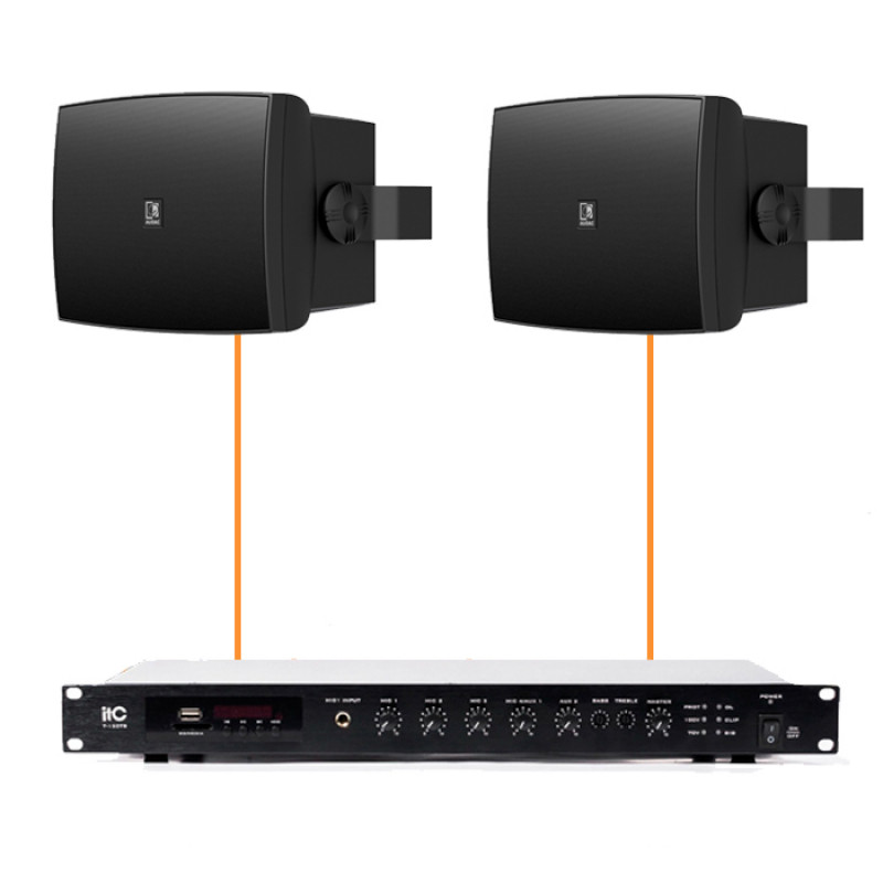 Центральным звеном системы выступает микширующий усилитель ITC T-120TB. Его мощность 120 Вт оптимально подходит для работы с двумя мощными колонками в режиме 100В. Усилитель оснащен встроенным медиаплеером с Bluetooth, USB-портом и FM-тюнером, что делает его универсальным источником звука. Наличие трех микрофонных входов с функцией приоритета позволяет использовать систему для проведения мероприятий и оперативных объявлений. Интуитивно понятное управление и встроенные системы защиты гарантируют долговечность всей аудиосистемы.