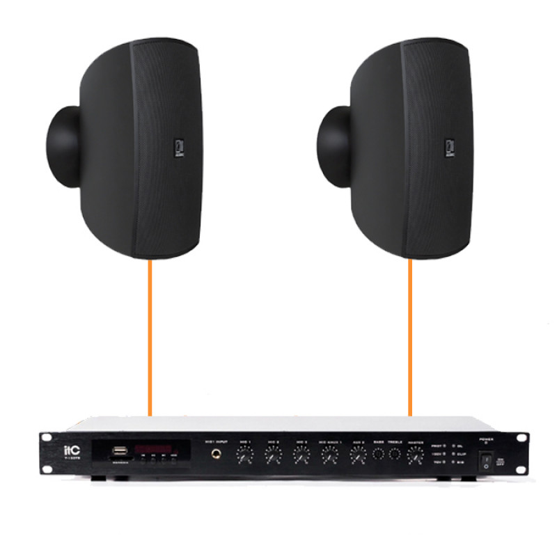 Усилитель ITC T-120TB мощностью 120 Вт выступает надежным силовым агрегатом системы. Он обладает достаточным запасом мощности, чтобы работать с двумя колонками ATEO6 на максимальных настройках без перегрева. Встроенный медиаплеер с поддержкой Bluetooth, USB-портов и FM-тюнера обеспечивает полную автономность — музыку можно запускать напрямую со смартфона. Наличие трех микрофонных входов с функцией приоритета делает этот комплект отличным инструментом для проведения презентаций, мероприятий или оперативного информирования посетителей.