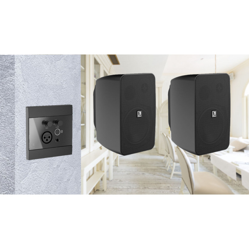 AUDAC ARES5 активная двухполосная акустическая система 5'', 2х20Вт. Настенные динамики с панелью управления Audac WP225b Bluetooth подключение. Блютуз, aux панель на стену.