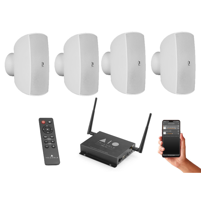 Мультирум система 4 настенных колонки Audac ATEO4M и усилителя Triangle AIO Pro A50. Управление через Bluetooth или Wi-Fi приложение AIO