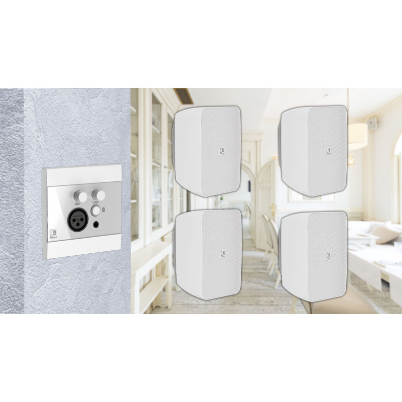 Активный блютуз комплект акустики на 4 настенных динамика AUDAC ARES5 с панелью управления AUDAC WP225w Bluetooth