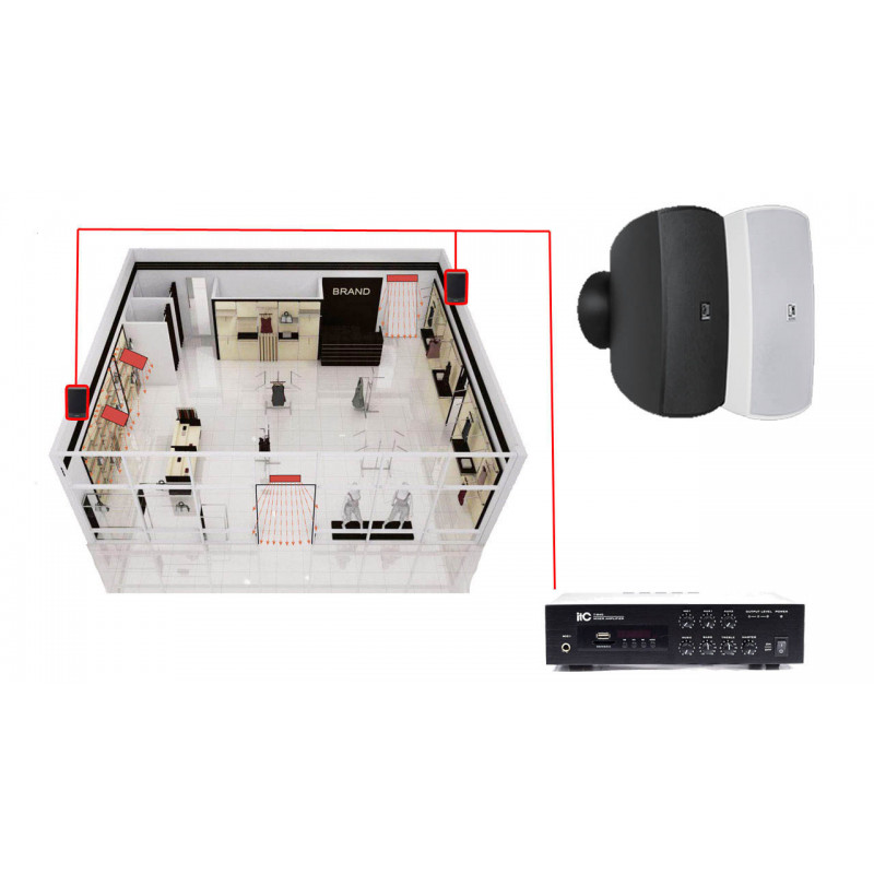 Для фоновой музыки, комплект акустики для магазина 24Вт настенные колонки AUDAC. Музыка с флешки USB, карты памяти SD, или блютуз с телефона