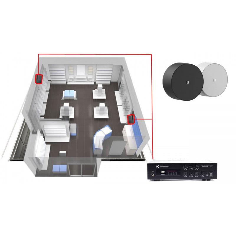 Комплект акустики для магазина, бутика, фоновой музыки, комплект акустики для офиса 20Вт настенные колонки AUDAC. Музыка с флешки USB, карты памяти SD, или блютуз с телефона.