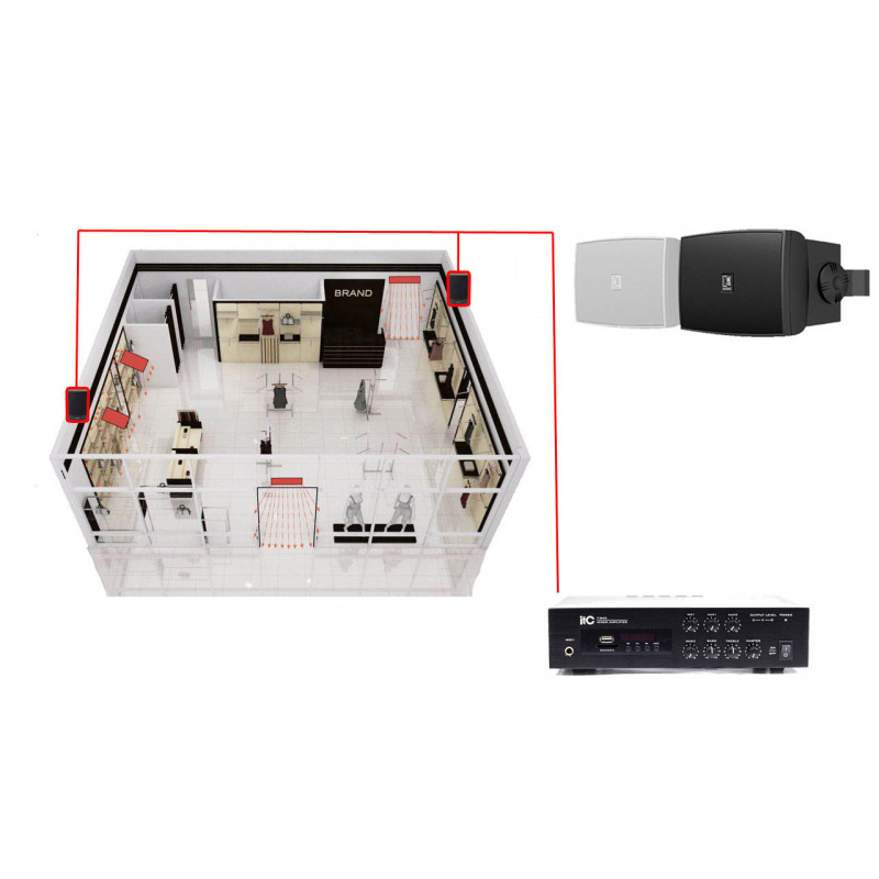 Для фоновой музыки, комплект акустики для магазина 20Вт настенные колонки AUDAC. Музыка с флешки USB, карты памяти SD, или блютуз с телефона