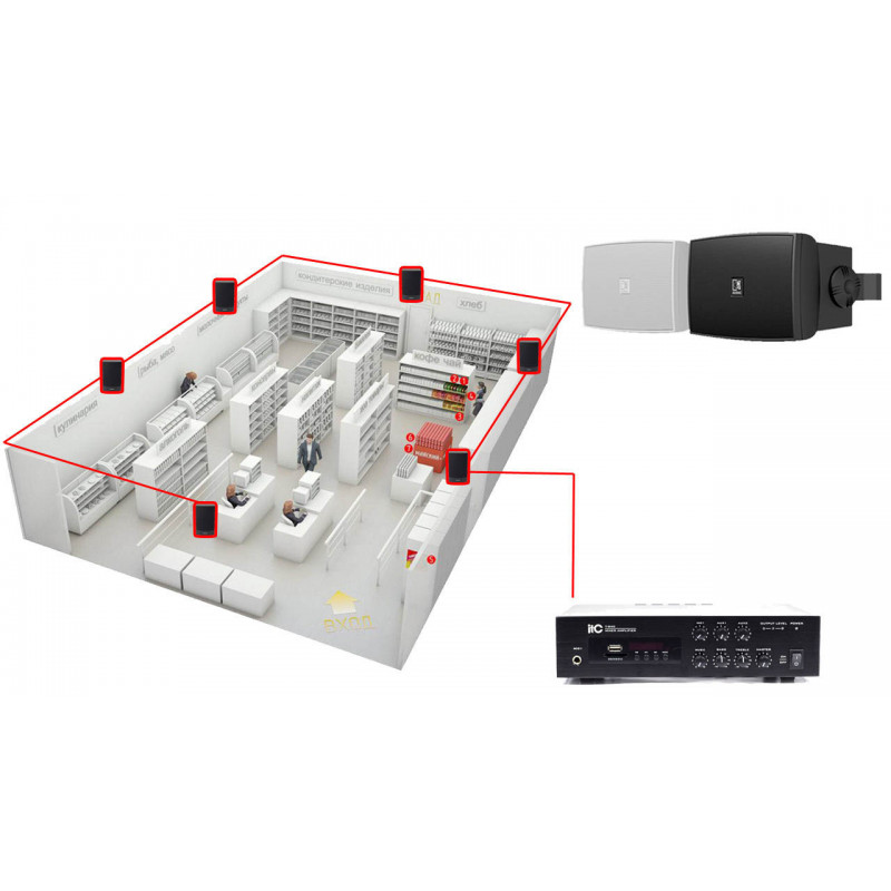 Комплект акустики для магазина 6 настенных колонки AUDAC WX302