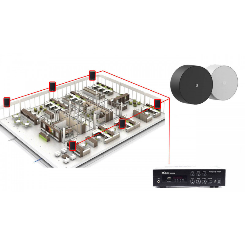 Комплект акустики для офиса, фоновой музыки, комплект акустики для офиса 20Вт настенные колонки AUDAC. Музыка с флешки USB, карты памяти SD, или блютуз с телефона.
