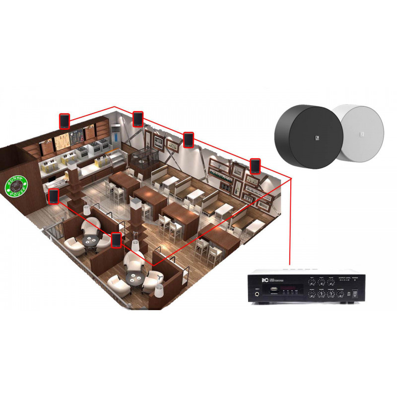 Для фоновой музыки, комплект акустики для ресторана, кафе 36Вт настенные колонки AUDAC. Музыка с флешки USB, карты памяти SD, или блютуз с телефона
