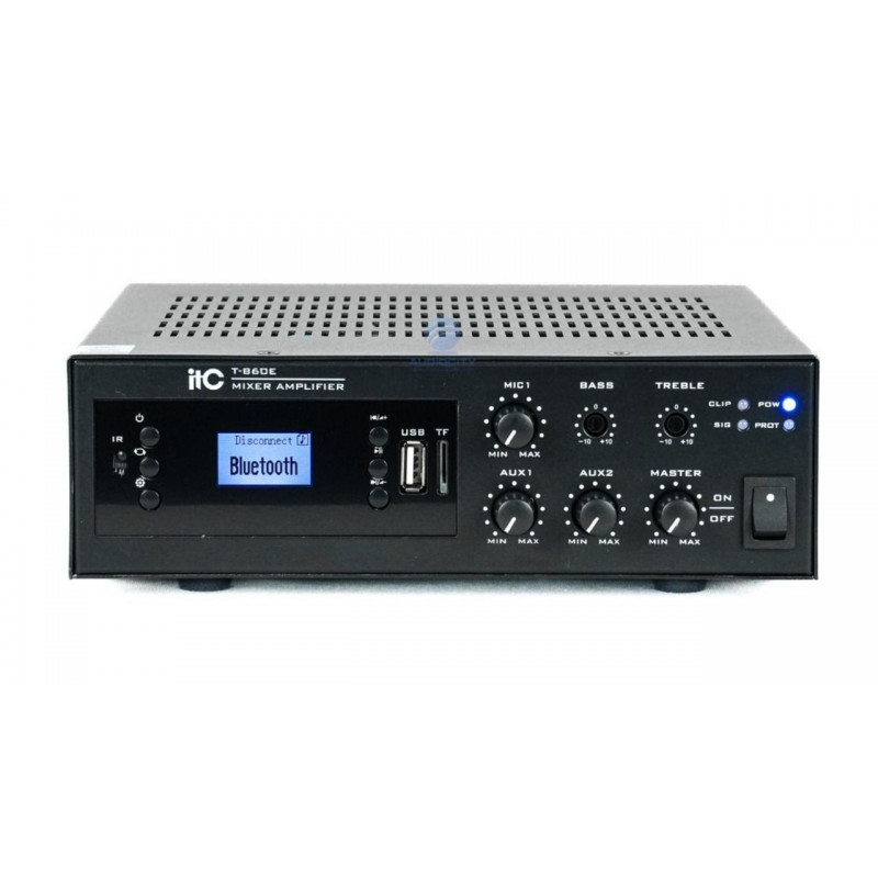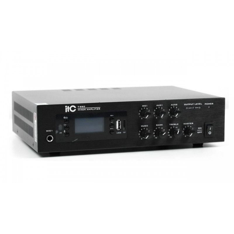 Усилитель звука ITC T-B60E трансляционный для фоновой музыки 60Вт. для магазинов, ресторанов, офисов, бутиков, салонов красоты, спорт клубов, клиник. С флешкой, блютуз.