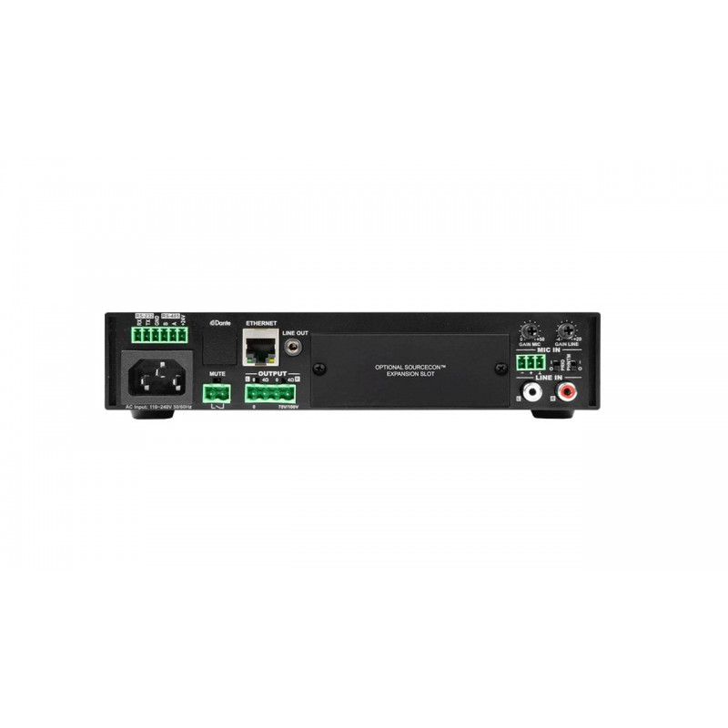 AUDAC MFA216 – это трансляционный усилитель мощности, который идеально подойдет для построения распределенных систем оповещения и фонового озвучивания на объектах любого масштаба, включая кафе, рестораны, офисы, магазины, бары и т.п. Выполнен в компактном металлическом корпусе, благодаря чему его можно легко установить в любую нишу или закрепить в 19” RACK стойку (Rackmount крепление в комплект не входят). Оснащен встроенным блоком питания с широким диапазоном входного напряжения от 100 до 240 В AC, то есть будет работать практически от любой сети переменного напряжения. Построен на архитектуре класса D, имеет максимальную выходную мощность 2х 80 Вт (стерео) в низкоомном режиме 4 Ом или 2х 40 Вт (стерео) в режиме 8 Ом. Также поддерживается подключение трансформаторных громкоговорителей для работы в линии 70/100 В при этом выходная мощность составляет 160 Вт (Bridge).