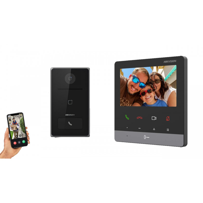 Готовый комплект IP видеодомофона для квартиры, дома, офиса и бизнеса. Можно установить домофон Hikvision для любого помещения или улицы с принятием вызовов на монитор или ваш смартфон удаленно через приложение Hik-Connect.