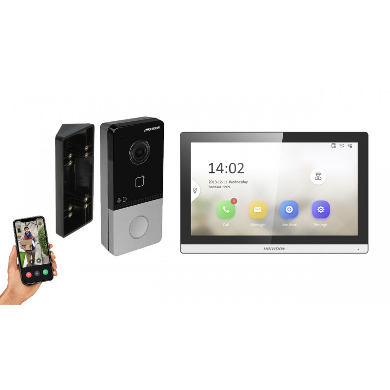 Готовый комплект IP видеодомофона для квартиры, дома, офиса и бизнеса. Можно установить домофон Hikvision для любого помещения или улицы с принятием вызовов на монитор или ваш смартфон удаленно через приложение Hik-Connect.