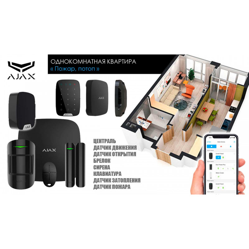 Сигнализация для однокомнатной квартиры Ajax пожар, потоп