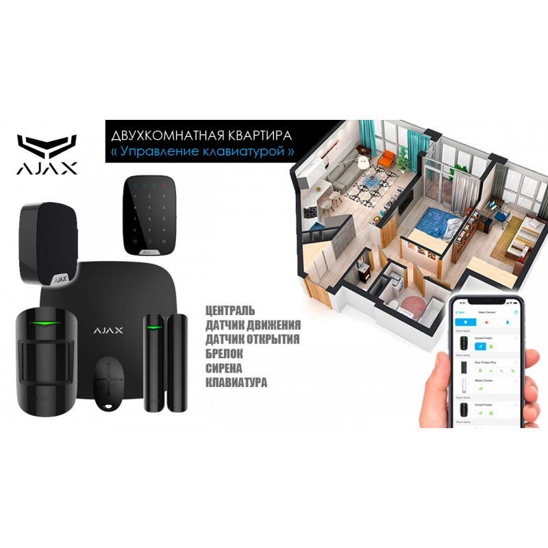 Сигнализация для двухкомнатной квартиры Ajax с клавиатурой