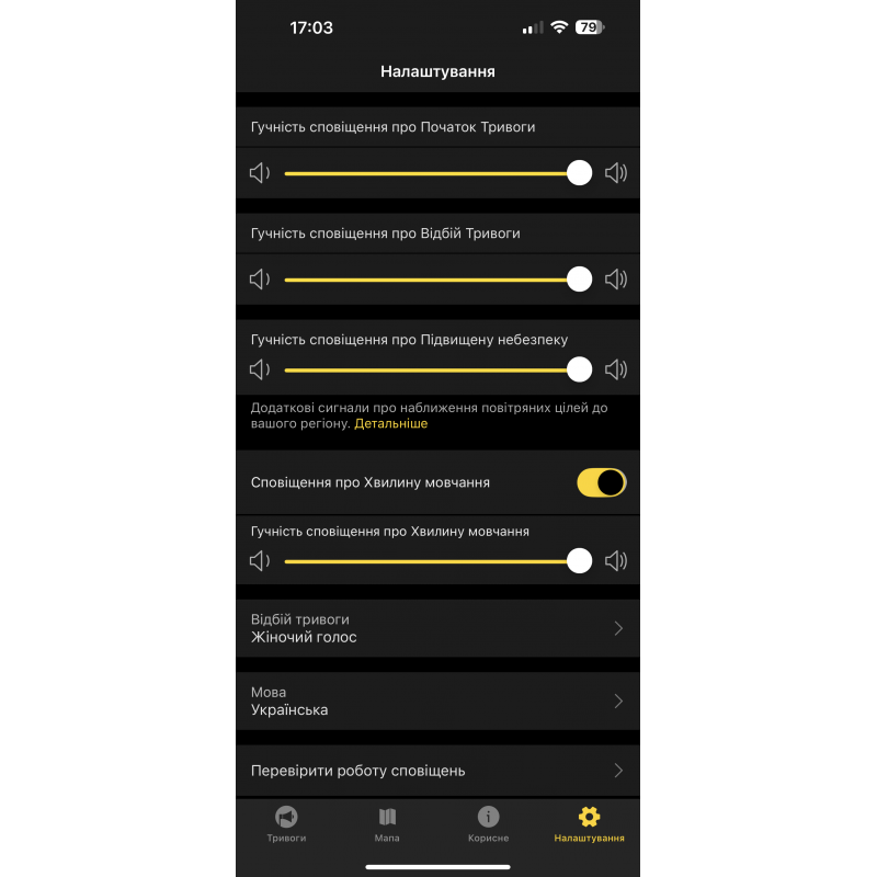 - встановлюються додатки для оповіщення про повітряну тривогу,